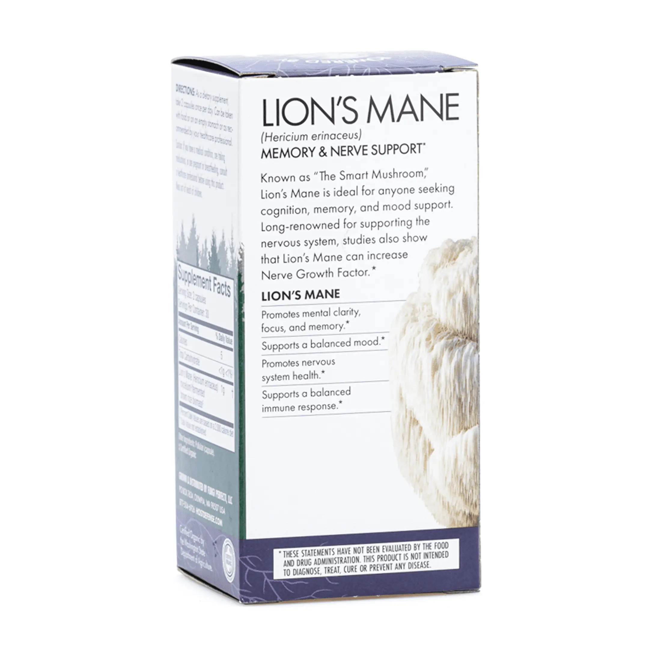 Each bottle contains 60 capsules with pure Lion’s Mane (Hericium erinaceus) mycelium/fermented brown rice biomass extract. It is recommended to take two capsules daily with or without food. All Host Defense mushrooms are sustainably cultivated, certified organic, and U.S.-grown mushrooms from the forest, to the farm, to the customer. All products are third-party lab tested, gluten-free, vegan-friendly, and non-GMO.