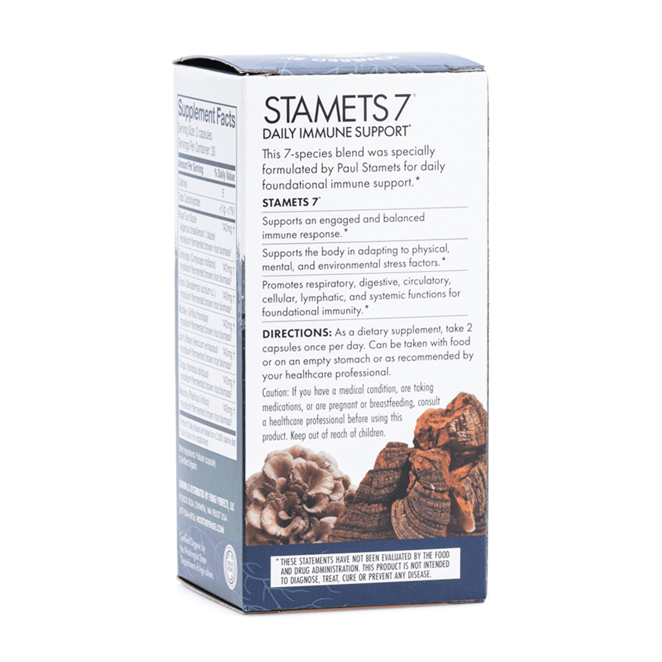 Host Defense Mushrooms Stamets 7 Capsules provide greater immune benefits and a broader range of system-specific support. Mushrooms interact synergistically with each other to accomplish more together. The large concentration of multiple polysaccharides and beta-glucans found in these capsules have shown to improve the immune system, reduce inflammation, and enhance overall well-being.