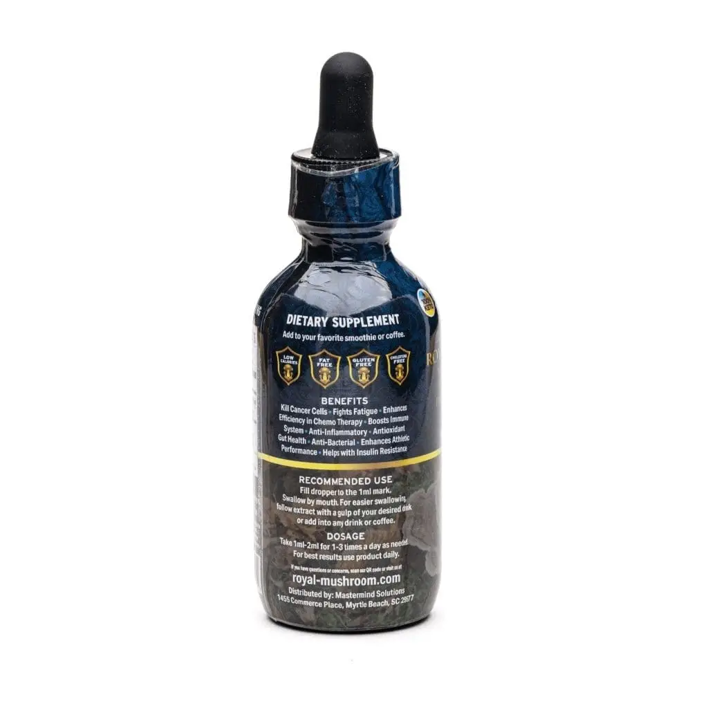 The Royal Mushroom Turkey Tail Mushroom Oil Tincture is a convenient way to experience Turkey Tail mushrooms. They’ve been used for millennia in Asia and may help treat a variety of health concerns, including fatigue, muscle weakness, UTIs, and more. Turkey Tail mushrooms may kill free radicals that can damage your cells, causing disease and premature aging.
